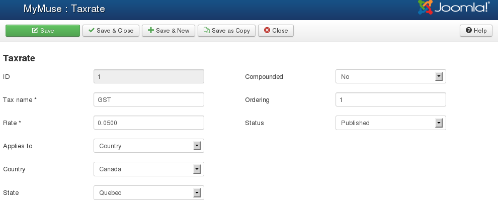 • Ordering. The order the taxes should be applied. You should give compounded taxes a highr number.